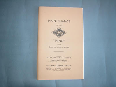 Maintenance Manual of the Riley Nine (1932 to 1934) motor cars.